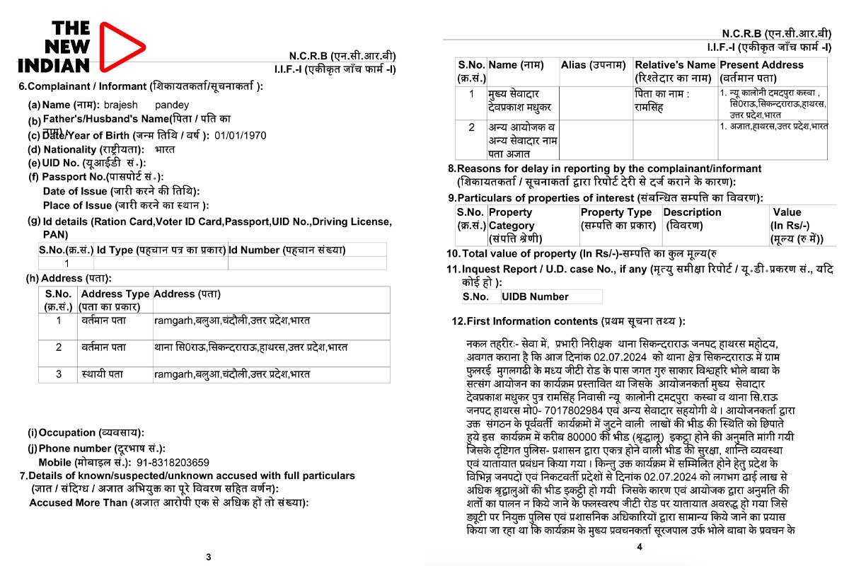The New Indian has accessed the FIR copy which says that it was the fault of the organiser due to which the incident happened.