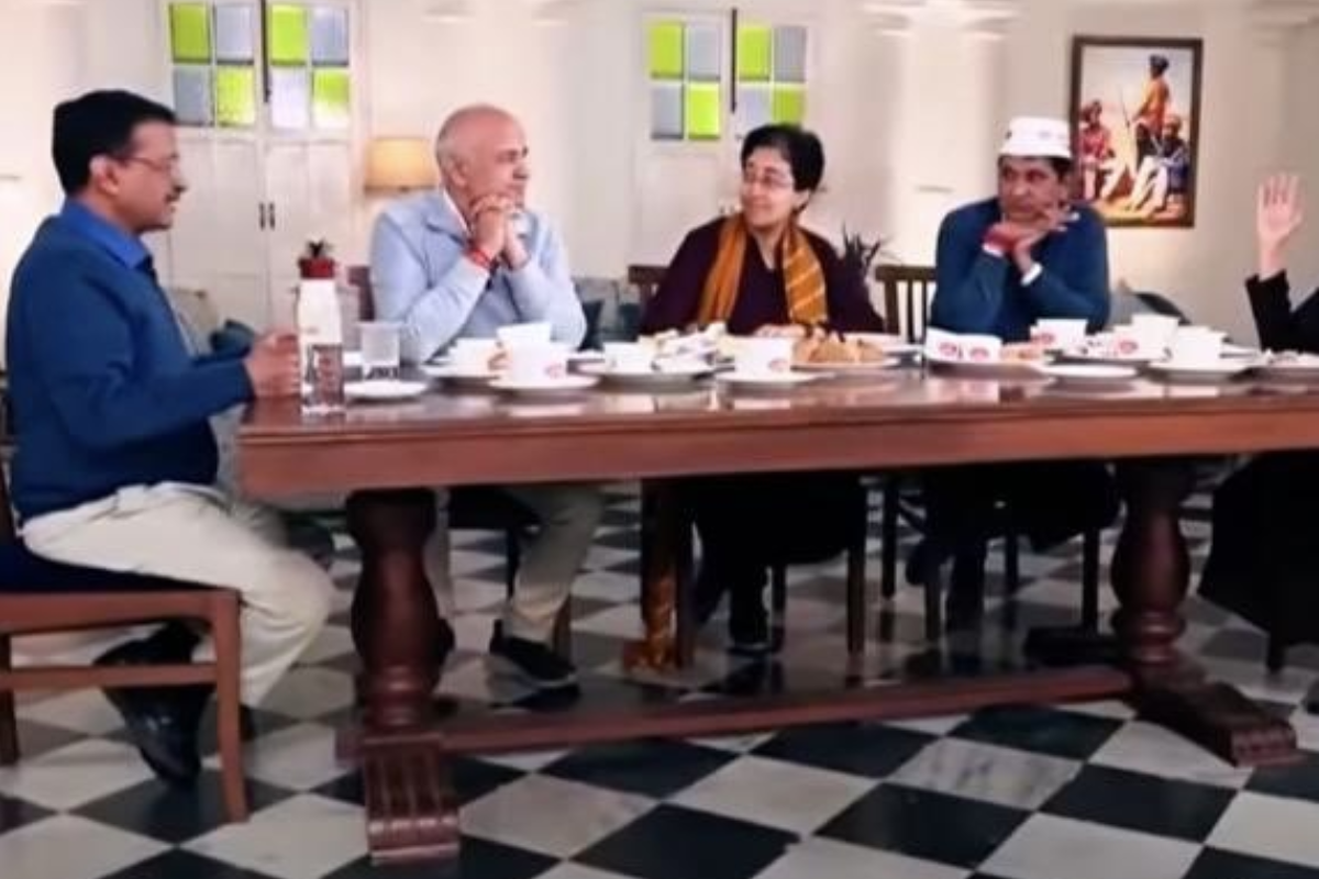 Sirsa, who is contesting against AAP’s Dhanwati Chandela, took to social media to share images of Kejriwal, Delhi’s current CM Atishi, former, senior AAP leader Manish Sisodia and other AAP members having lunch at Kapurthala House, Punjab Bhawan.