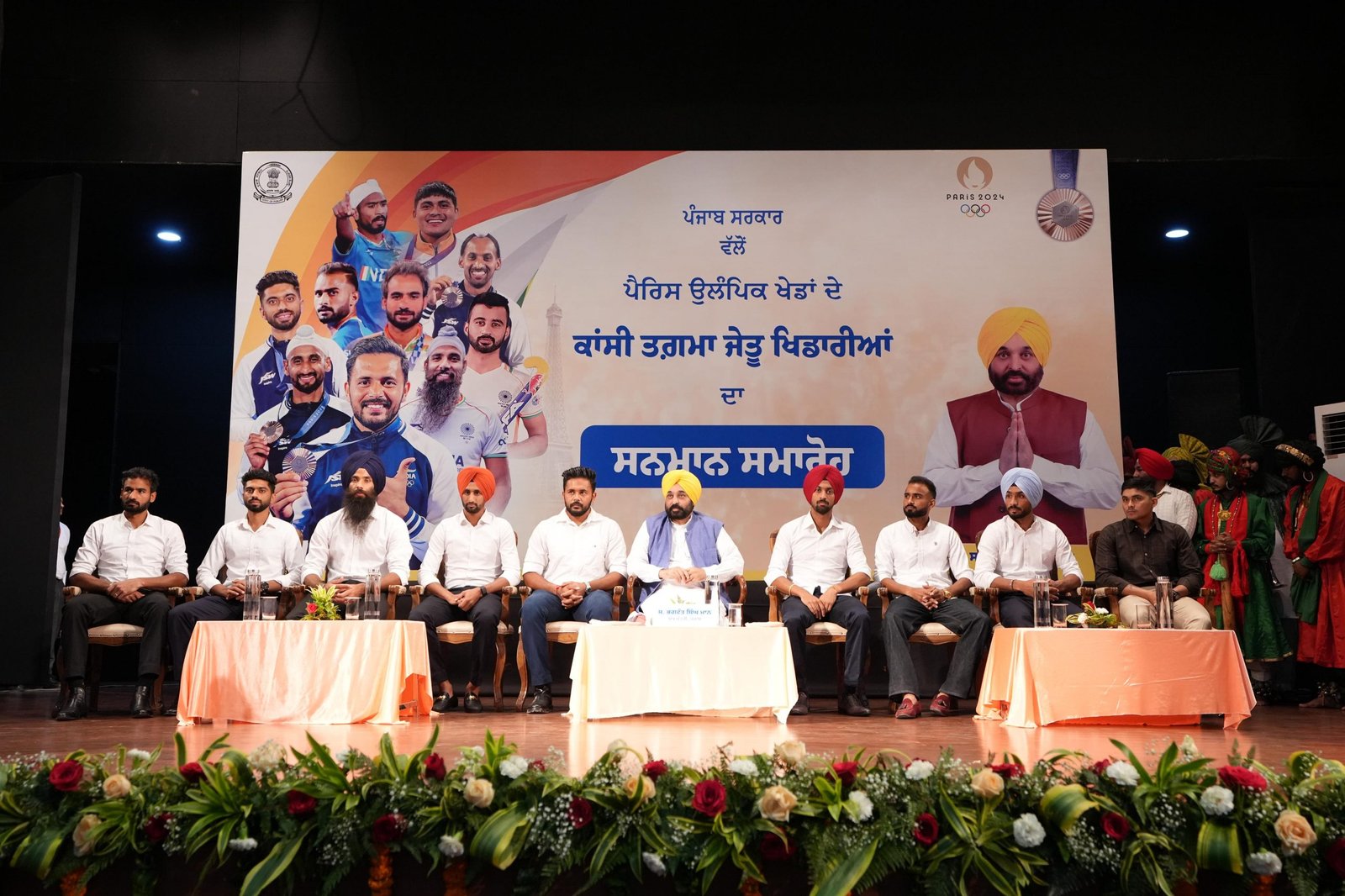 NEW DELHI: Punjab Chief Minister Bhagwant Singh Mann honored eight members of the Indian hockey team, hailing from Punjab, with a cash prize of Rs 1 crore each for their outstanding performance in winning a bronze medal at the Paris Olympics.
