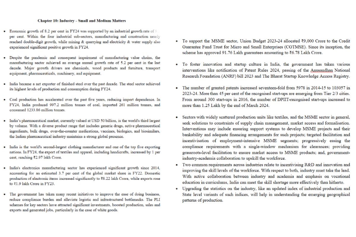 The Economic Survey 2024 sets a hopeful tone for India’s economic future, with robust industrial growth, significant government initiatives, and a focus on skilling and employment poised to drive the country towards greater economic resilience and self-reliance.