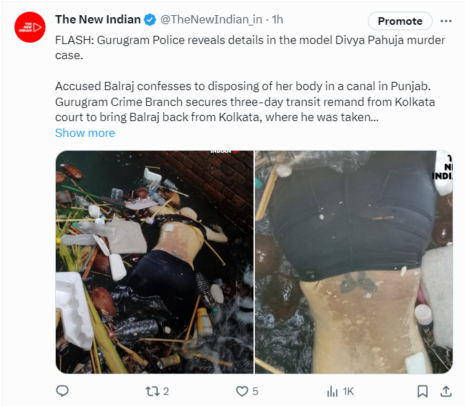Body of Ex-model, Divya Pajuha recovered in a canal in Gurugram after 11 days of investigation
