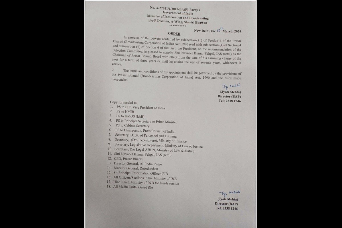 NEW DELHI: Navneet Sehgal, a 1988-batch retired Uttar-Pradesh cadre IAS, has been handpicked by Centre to be new Prasar Bharati chairman, a post that had been lying vacant for last four years.
