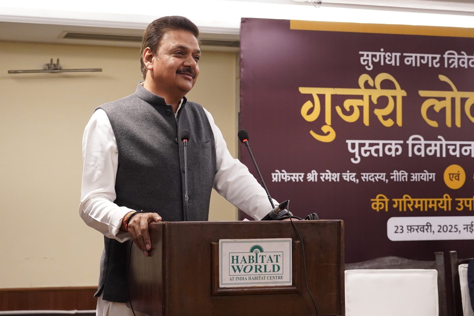 NEW DELHI: The book “Gurjari Lok Geet” by Sugandha Nagar Trivedi was launched at a special event. The occasion was graced by Prof. Ramesh Chand, Member, NITI Aayog, and Surendra Singh Nagar, MP, Rajya Sabha. Sugandha Nagar Trivedi, author of Gurjari Lok Geet, shared insights into her work. She highlighted its role in preserving traditional folk music from Uttar Pradesh, Delhi, and Haryana. She stressed that folk songs are fading due to modern film music.