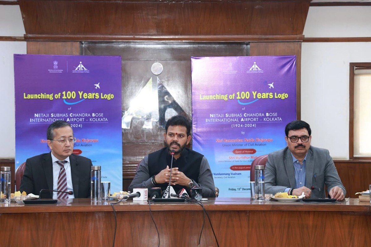 New Delhi: Civil Aviation Minister Ram Mohan Naidu Kinjarapu on Friday unveiled the centenary celebrations logo of Netaji Subhas Chandra Bose International Airport in Kolkata. The event, held at Rajiv Gandhi Bhawan in New Delhi, was streamed live in Kolkata, according to an official statement.