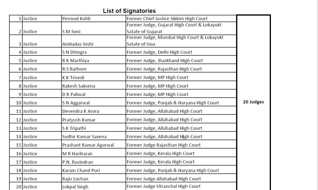 The prominent signatories include former Chief Justices, High Court judges, IAS and IPS officers, and military veterans, underscoring the widespread demand for immediate and decisive action from the state government.