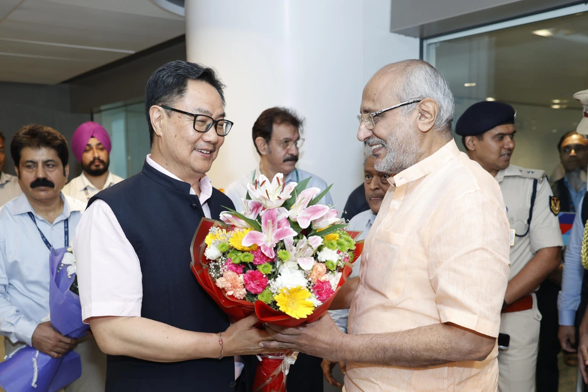 Kiren Rijiju, Civil Aviation Minister Ram Mohan Naidu, Union Ministers Bhupender Yadav, and Pralhad Joshi, along with Delhi Chief Minister Rekha Gupta and Delhi BJP President Virendra Sachdeva, were present at Indira Gandhi International Airport to receive him.