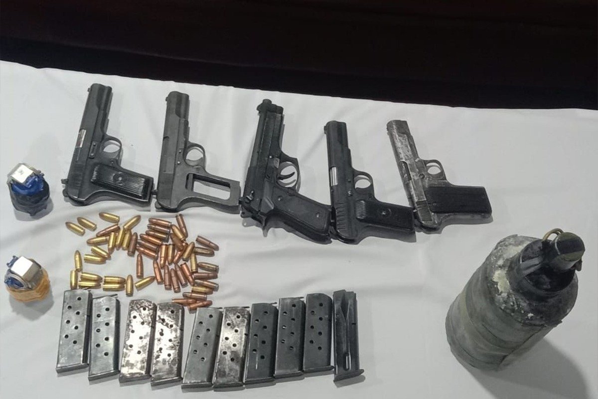 Five pistols, ten magazines, 49 pistol rounds and two grenades, an IED are among a huge cache of arms of have been recovered from arrested module members.