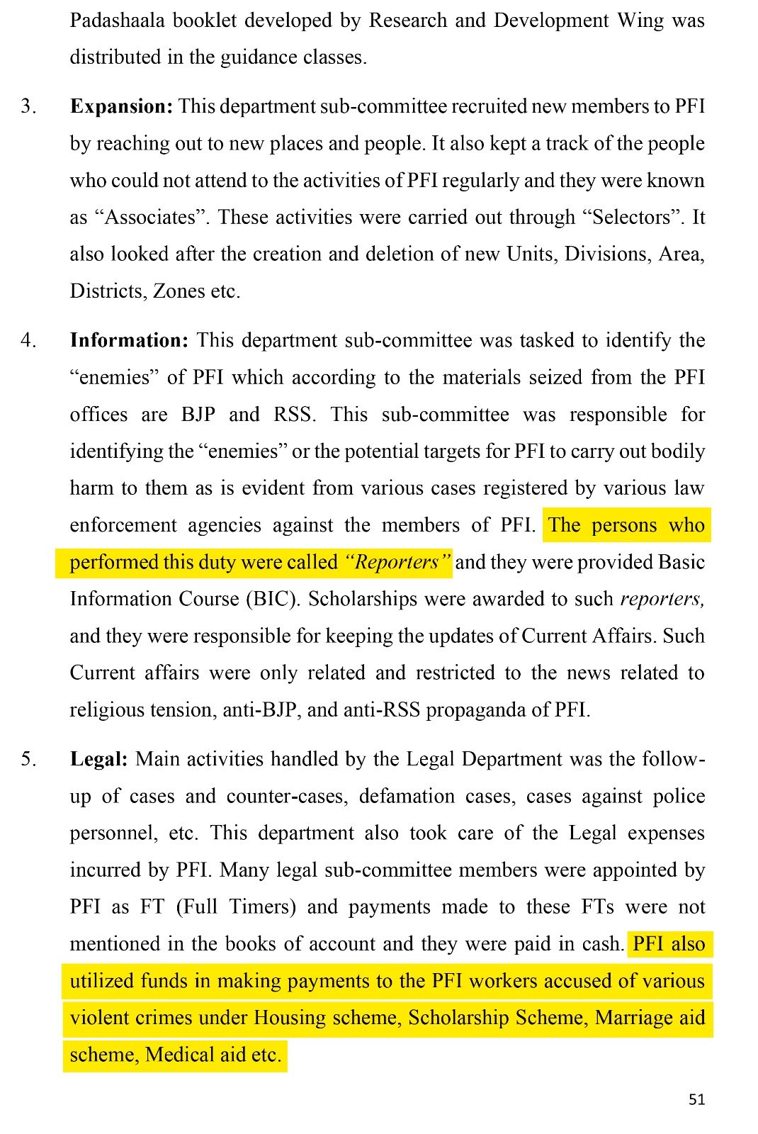 The ED contends that these illicit funds were funnelled into illegal activities by the PFI. Specifically, the chargesheet alleges that PFI operatives involved in violent acts received financial incentives under the guise of housing and marriage schemes.