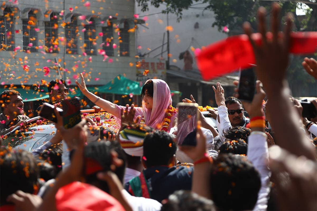 Dimple Yadav campaigns in Mainpuri for the 2024 elections, rallying support and invoking Mulayam Singh Yadav’s legacy (Photo by Sumit Kumar)