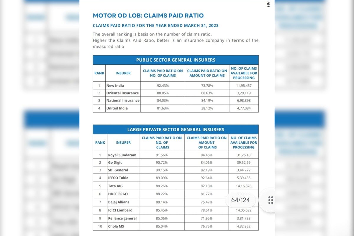 In the private sector, Royal Sundaram, Go Digit, and SBI General Insurance have emerged as leaders, boasting claim clearance rates of 91.56%, 90.72%, and 90.15%, resulting in 2.73 lakh, 3.6 lakh and 3.15 lakh claims settled by them each.