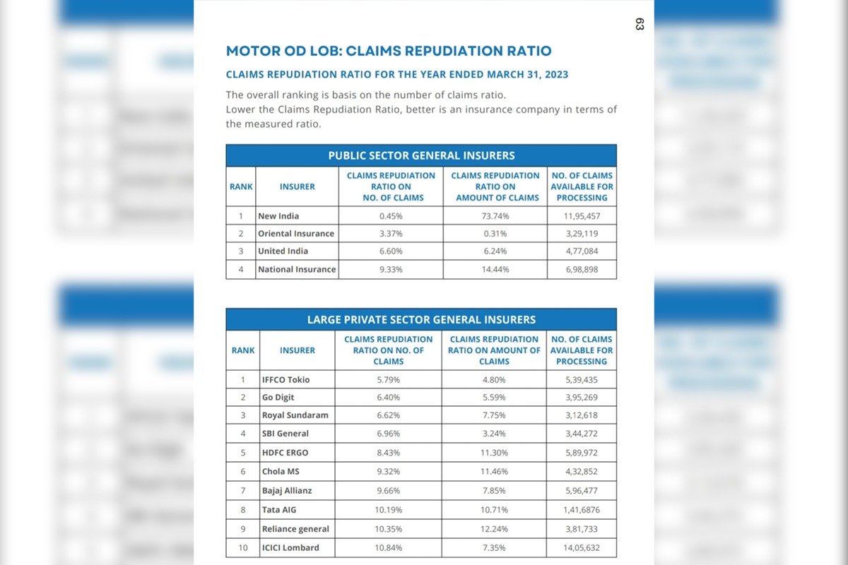 While Reliance General, from the house of Ambanis, saw a repudiation rate of 10.34%, Navi General reported the repudiation rate of 15.5%.