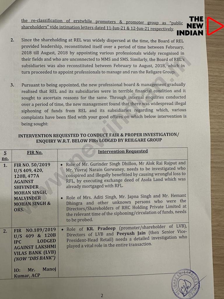 “Role of Gurinder Singh Dhillon, Alok Rai Rajpur, and Yuraj Narain Gorwaney, needs to be investigated who conspired and illegally benefitted by causing wrongful cause of RFL by executing deed of Asola Land, already mortgaged with RFL”.