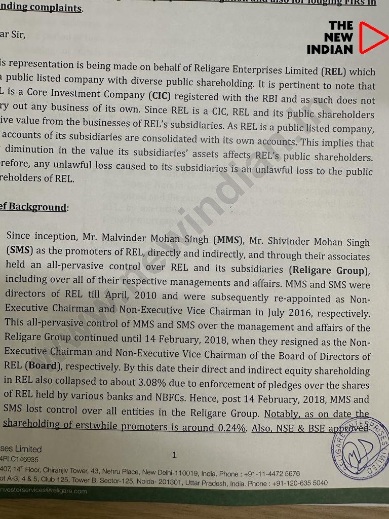 The New Indian has accessed all relevant documents related to this complaint at a time when Burman family, the promoter of Dabur — India’s leading consumer goods company, has mysteriously made an open offer in public to raise its stake to 26 % in Religare. Dabur family already has a holding of 21.5 % in Religare Enterprises Limited.