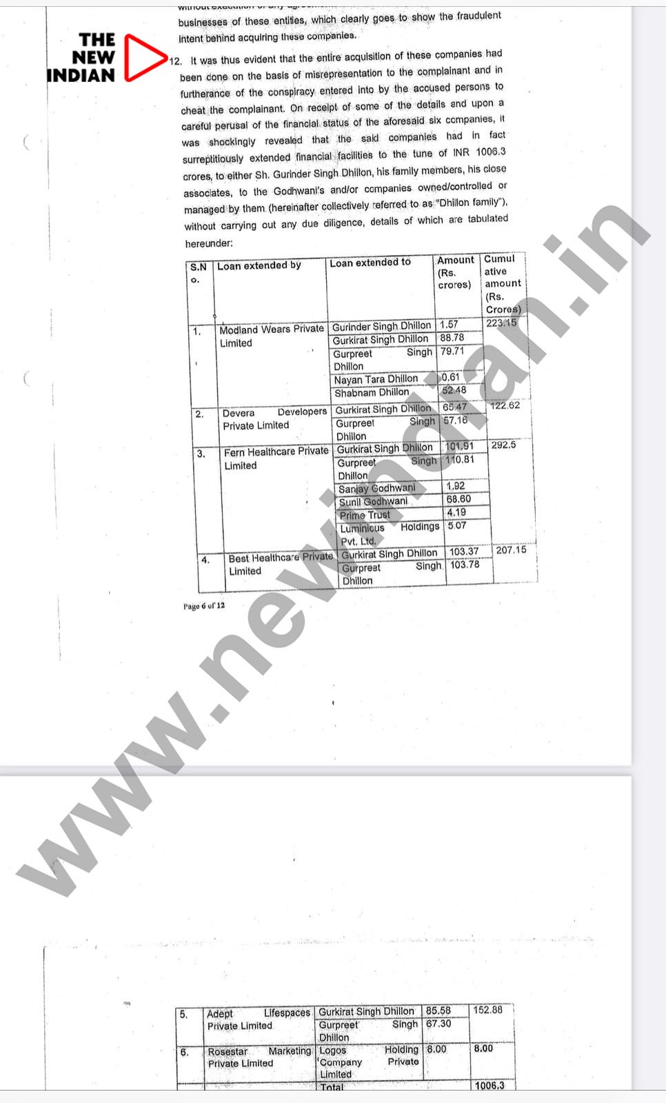 The deposits made from these companies were as follows. Modland was used to divert Rs 223 crore, Devera gave Rs 122.6 crore, Fern Healthcare handed over Rs 292.5, Best health care deposited Rs 207, Adept and Rosestar gave Rs 152.8 and Rs 8 crore to Dera baba’s family members: Gurinder Dhillon (himself), Gurkirat, Gurpreet Dhillon, Shabnam Dhillon ( Dera baba’s wife).