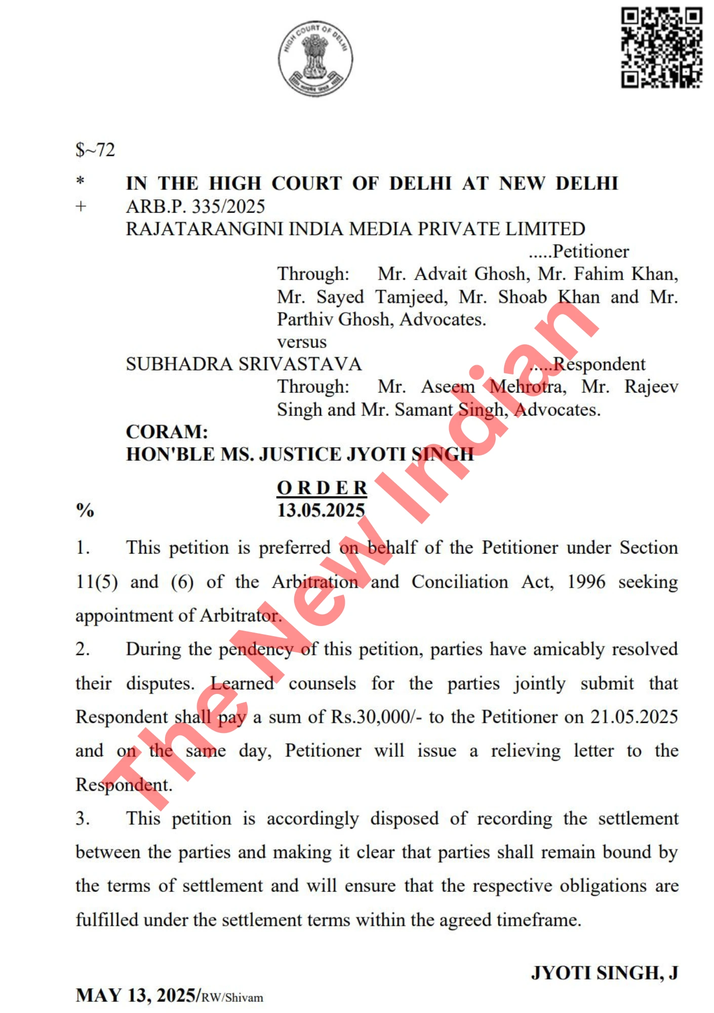 The New Indian, renowned for its high editorial standards and quality journalism, had filed a petition in the Delhi High Court on February 18, 2025, against Subhadra Srivastava, who was hired as a trainee journalist.