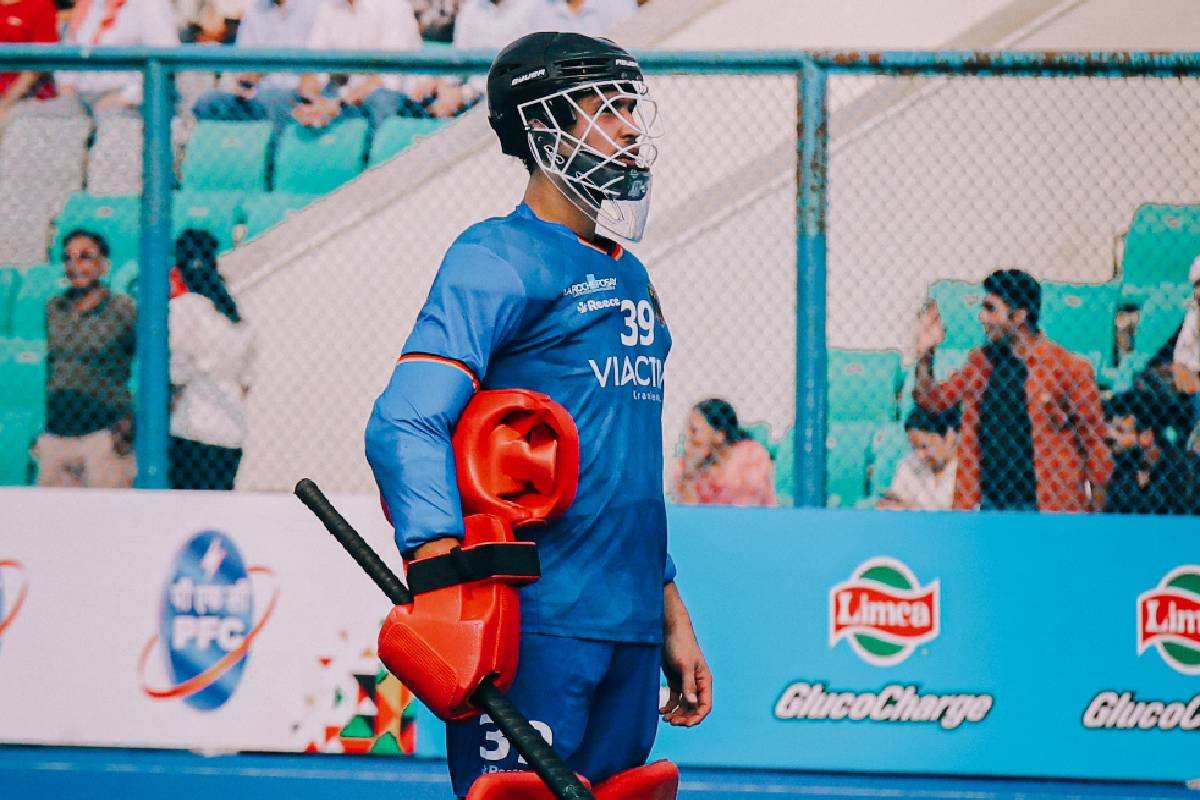 Germany’s Jean Danneberg made crucial saves in the PFC India vs. Germany Bilateral Hockey Series 2024, helping his team secure a victory (Photo by Tejasvi Pandey)