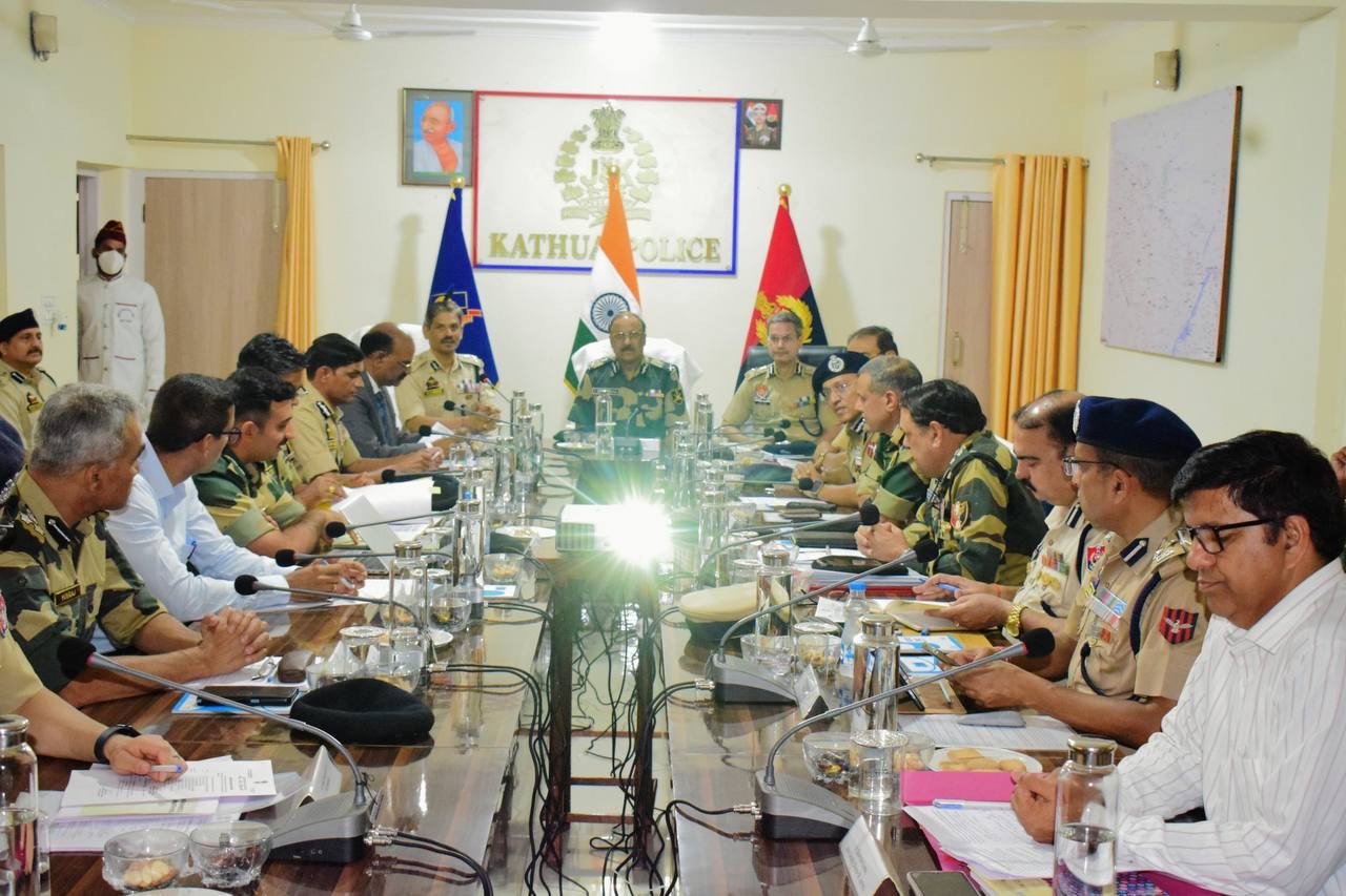 The meeting reviewed the Security Grid along the IB in Jammu & Kashmir and Punjab and explored measures to address any vulnerabilities to prevent infiltration from Pakistan. The meeting, held at the District Police Lines in Kathua, was chaired by BSF Special Director General, Western Command, Y B Khurana, and attended by Director General of Police R R Swain and his Punjab counterpart Gaurav Yadav, among others.