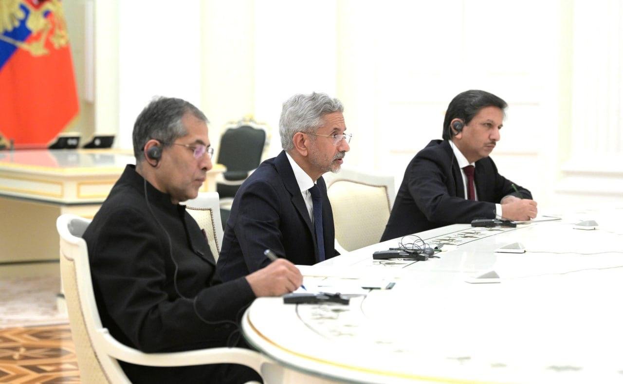 FLASH: Russian President Vladimir Putin held a meeting with External Affairs Minister Dr S Jaishankar at the #Kremlin, on Thursday, to discuss the growing trade relations between the two countries pic.twitter.com/Uyx4kg9grU