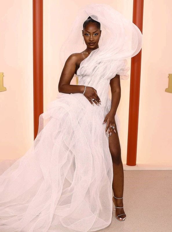 Tems donned an avant-garde hooded gown by Lever Couture, enveloping her in a mesmerising trail of smoke. This unique dress, designed to captivate from every perspective, featured tulle delicately embracing her, creating an enchanting and ethereal presence.